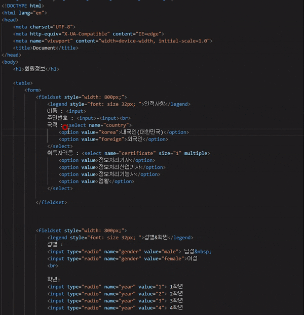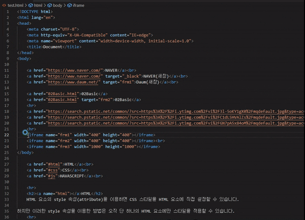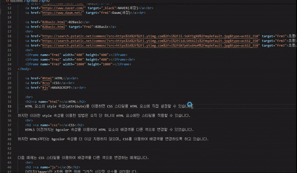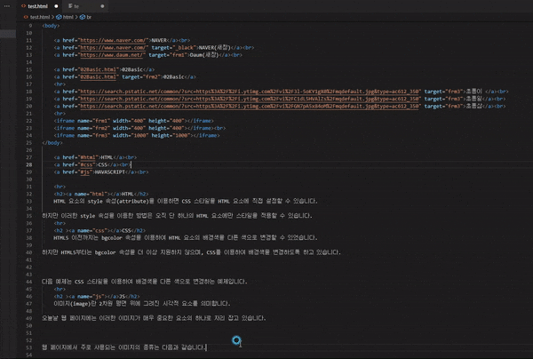 html 코드안에서는 <-- --> 처리가되지만 js상에서는 /* */ 또는 // 처리가 되는것도 참고해주시면 좋다